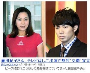 本日の記事は「ピース綾部&藤田紀子30歳差熱愛報道」です。