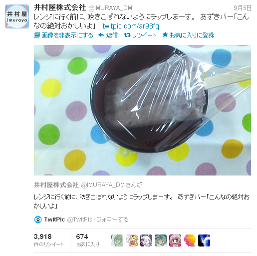 本日の記事は「井村屋公式twitter、あずきバーを温める」です。