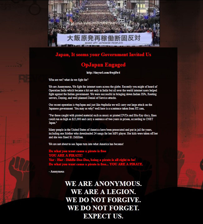 ハッカー集団 「アノニマス」、日本政府とレコード協会に“宣戦布告”!!
