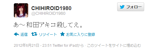 (あー和田アキ子殺してぇ とのつぶやき誰?)