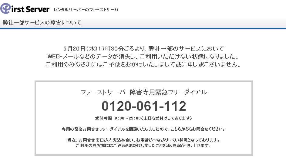 【大惨事】レンタルサービス「ファーストサーバ」で大規模な障害発生 データ全消去