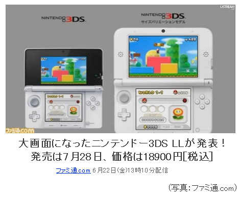 本日の記事は「ニンテンドー3DS LLが2012年7月28日に発売」です。