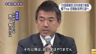 本日の記事は「大阪都構想否決で橋下徹氏、政界引退へ」です。