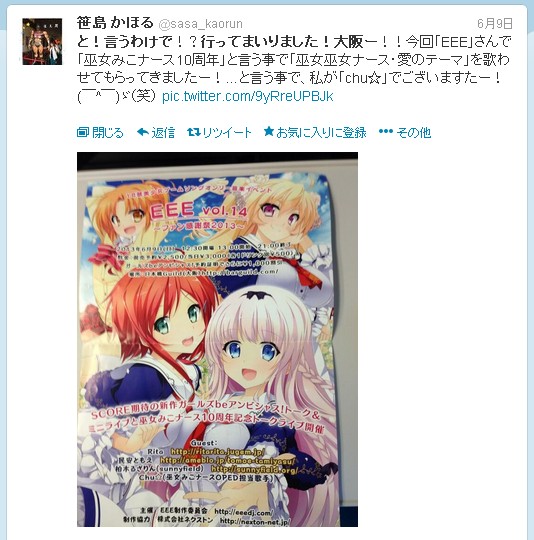 電波ソング『巫女みこナース』を歌っていたのは声優・笹島かほるさんだったことが判明!