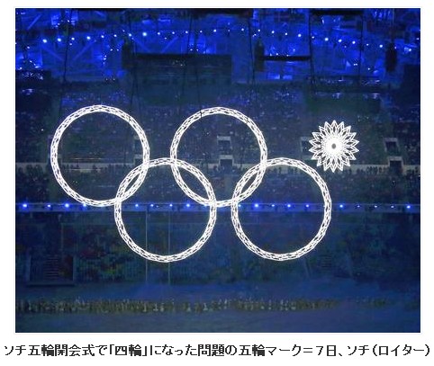 本日の記事は「ソチ五輪の開会式で五輪マークが四輪に」です。