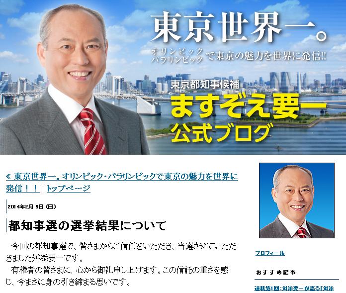 ※当選したことを伝える舛添要一氏のブログ