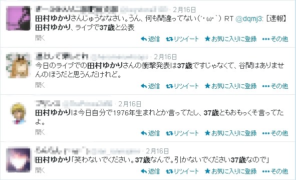 本日の記事は「田村ゆかり、開催中ツアーで実年齢37歳と公表」です。