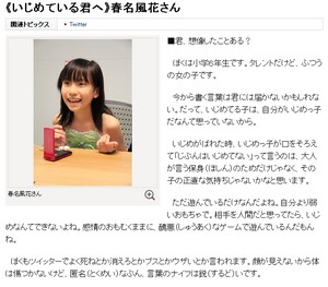 朝日新聞:《いじめている君へ》春名風花さん