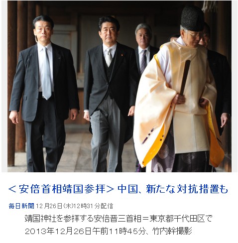 2013年12月26日、安倍首相が靖国参拝しました。