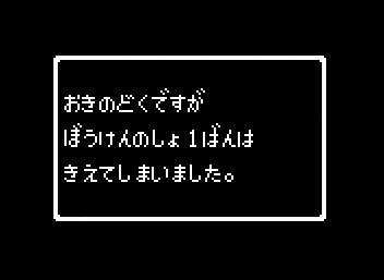 セーブデータが消えると「おきのどくですがぼうけんのしょはきえてしまいました」という文字とともに、呪いの武具を装備したときの音楽がおどろおどろしく流れ、一気に不安な気持ちになったものです。